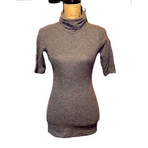 This stylish gray short sleeve sweater from FOREVER 21 is a must-have for any fashion-conscious woman. Made with a blend of polyester, spandex, and rayon, this regular-fit pullover sweater is perfect for all seasons and occasions and is so soft and comfy. It features a turtleneck neckline and solid pattern, making it an ideal choice for casual wear.