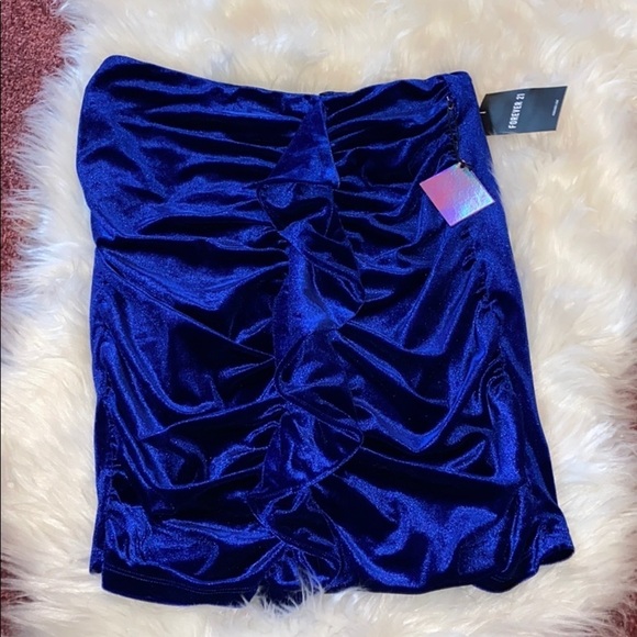 New with tags gorgeous royal blue forever 21 skirt the measurements are in the pictures it’s zips down in the back approximately 5 inches there is a red and yellow line through the tag