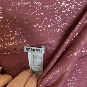 NWT Forever 21 wide band pink metallic leggings. Size Large. Gorgeous! So fun.