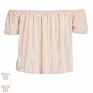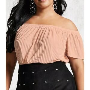 NWT Forever21+ Pink Blush Peach Velvet Stripped Off the Shoulder Top Blouse