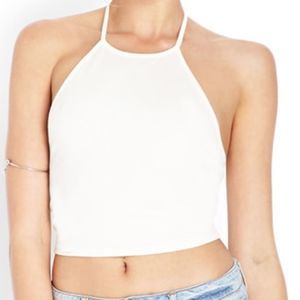 NWT Forever 21 Knit Halter Crop Top Ivory S