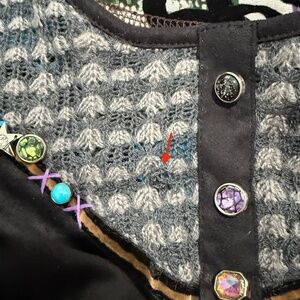 Flaw: Small snag in yarn at bust; see last photo; otherwise no holes or stains