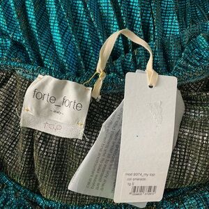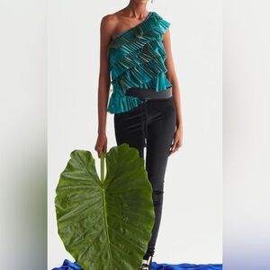 NWT Forte Forte One Shoulder Ruffled Lame Blouse Emeraldo 2