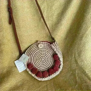 NWT Fossil Faye Baked Clay Round Straw Boho Crossbody