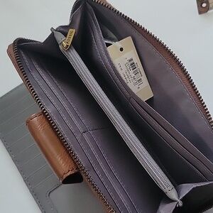 NWT Fossil Tan and Brown Logo Wallet
