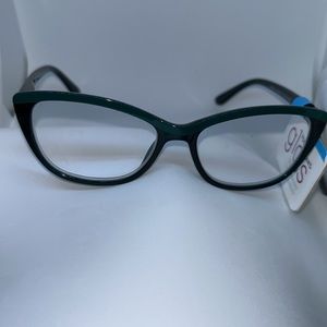 NWT Foster Grant Women's Gloss GL 2001 GRN GREEN Reading Glasses +2.00 Black