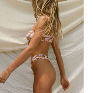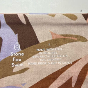 This is brand new with tags Stone Fox Swim LeLe bikini top! The LeLe top is designed to cover the essentials and leave the rest to the sun. A snug fit made from 84% recycled poly and 16% spandex. It will feel like sweet butter against your skin! See pictures for size chart, print and fit.