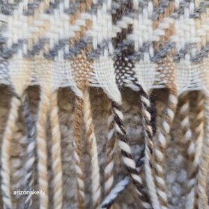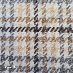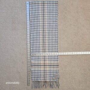 Brand new in neutral colored houndstooth, this 100% lambswool scarf was woven in Ireland by Foxford Mills. No flaws. No damage. No pet hair. No odors.