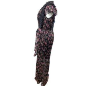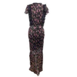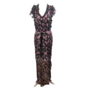 NWT Foxiedox Black & Pink Floral Sheer Maxi Cocktail Party Dress Small