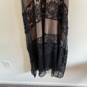 Features: Black with cream lining, lace and chiffon maxi dress, sheer details, sleveless.