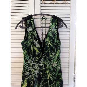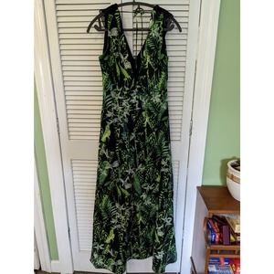 Style tags: Maxi dress, vacation, beach, formal, black tie, ruffle, designer, Anthropologie, tropical print, jungle print, v-neck, v-back