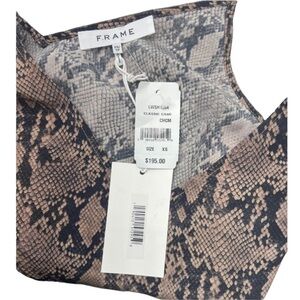 NWT Frame Brown Snake Print V-Neck Camisole. Size XS. 100% silk. Top is gorgeous, adjustable and lightweight! Measurements are approximate & taken on flat surface: