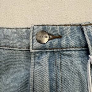 Frame Canteburry Blue Green Raw Hem Mixed Media Le Cargo Mini Denim Skirt