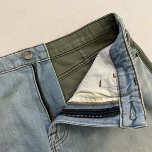 NWT Frame Canteburry Blue Green Raw Hem Mixed Media Le Cargo Mini Denim Skirt 29