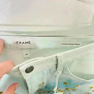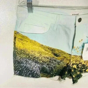 NWT Frame Denim Le Grand Garcon Floral Field Printed Raw Hem Shorts