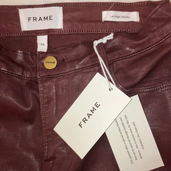 NWT Frame Le High Skinny High Rise Coated Jeans in Bordeaux-size 25