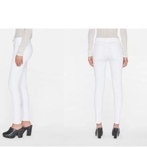 Classic 70s Inspired High-Rise with a Contemporary Skinny Silhouette. Crafted from Premium White Denim with Super Stretch and Strong Recovery.
