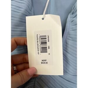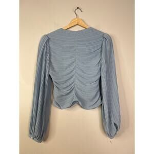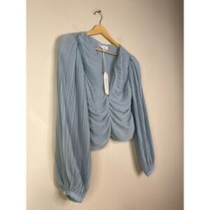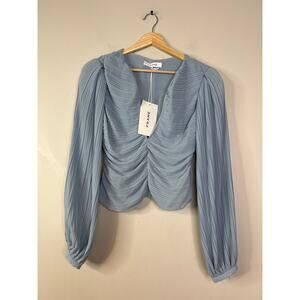 NWT Frame Pleated Billow Sleeve V-Neck Long Sleeve Blouse Top Chambray Blue