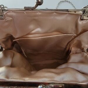 Frame beaded kiss clasp formal bag. Satin lining with card size pocket. ~6.5" x 7" NWT