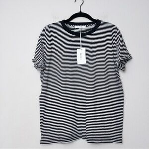 NWT Frame Slouchy Crew Tee M Noir Multi Striped Tshirt Cotton Pinstripe