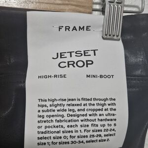 New with tags Frame Denim jetset mini boot leg pants coated chocolate brown last pic is stock photo sizing based on Frame website measurements approximately flat lay waist 12 front rise 10 inseam 25 1/2