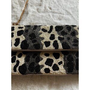 NWT Francesca Women’s Leopard Print Full Front Beaded Clutch Crossbody Purse