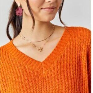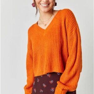 NWT Francesca’s Addison V-Neck Orange Cropped Sweater Size S