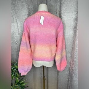 NWT Francesca’s Alicia Multi Ombré Balloon Sleeve Crew Neck Sweater Sz S