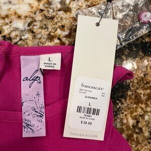 NEW WITH TAGS - RETAIL $ 38 - SIZE SMALL - This Francesca’s Alya Fuchsia Kristina Front Tie Tank Top is precious. Tank top with scallop sleeves and tie in front. 96% Polyester and 4% spandex, color is fuchsia