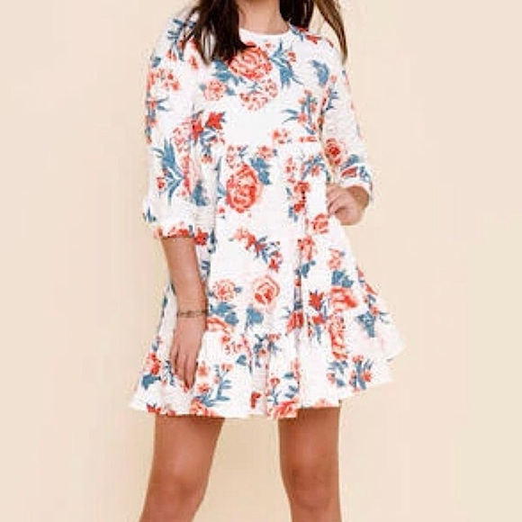 Francescas carra mini floral babydoll dress in a white and floral pattern. Size small.