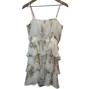 NWT Francesca’s Collection Sleeveless Ruffle Tier Floral White Mini Dress Medium
