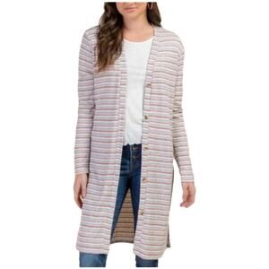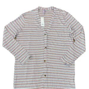 NWT Francesca's Collections White Waffle Knit Striped Tunic Cardigan -SIZE LARGE