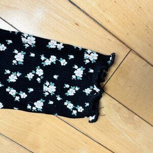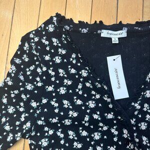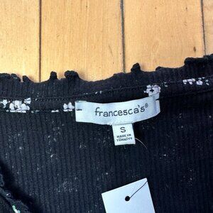 NWT Francesca's Cropped Lettuce Edged Ribbed Floral Button Front Top Size Small