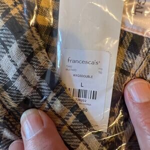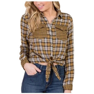 NEW WITH TAGS - RETAIL $40 - This Francesca's Gold plaid Button Down Shirt is precious. It has double pockets and ties at the waist for added style. 100% cotton Gold and black plaid. I also have red and black in another listing (see last photo)