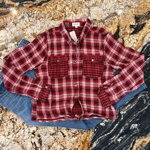 NWT Francesca's Dizzy Gal Gold/Black/White Plaid Button Down Shirt