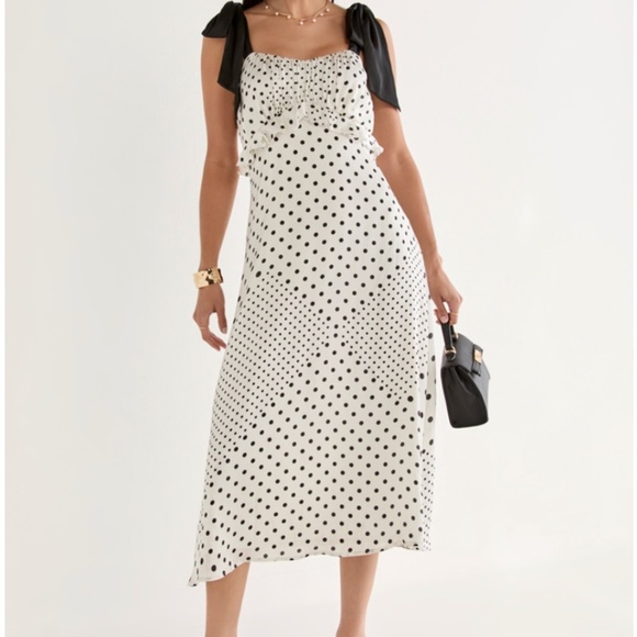 NWT! Francesca's- Donna Tie Strap Polka Dot Midi Dress Size L