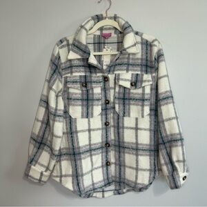 NWT Francesca's Hailey Front Pocket Plaid Shacket White Gray Purple Size Medium