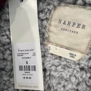 NWT Francesca's Harper Heritage Burgundy/Black Plaid Flannel/Sherpa Vest