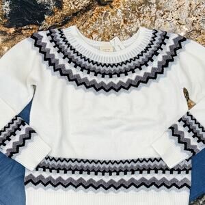 NWT Francesca's Harper Heritage Ivory/Black/Grey/Silver Fair Isle Sweater