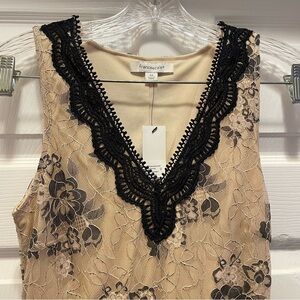 Brand new elegant lace dress from Francesca’s. Stunning cream colored lace with brown details. Perfect for so many different events.