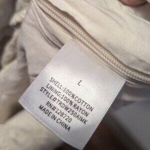 Size large. Pit to pit is approximately 18” across. Top of shoulder to bottom hem is approximately xx” long. Waist measures approximately 16” across, laying flat.