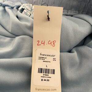 NWT Francesca’s Light Blue Swiss Dot Mini Faux Wrap Skirt Size Large