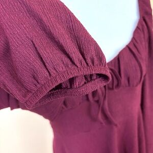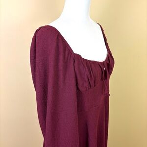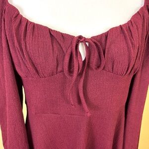 NWT Francesca’s Maroon Square Neck Boho Peasant Corset Long Sleeve Mini Dress(L)