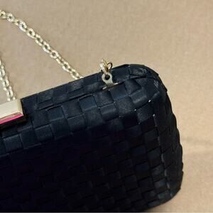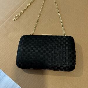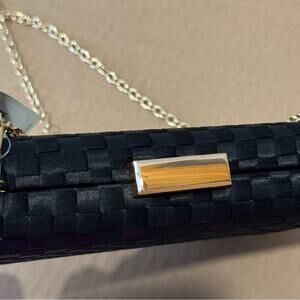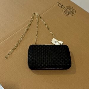 NWT Francesca’s Miami Woven Satin Clutch Crossbody Black Golden