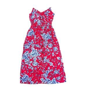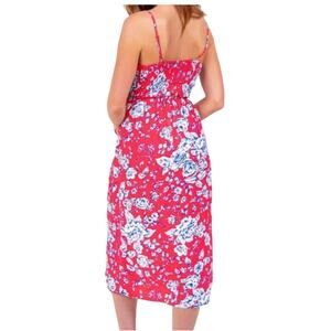 NEW WITH TAGS - SIZE SMALL - This precious Francesca’s Red floral front tie midi dress is perfect for spring. Red (slight pinkish), white and blue floral with tie front neck and button front. 100% rayon