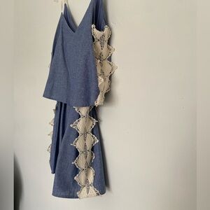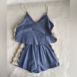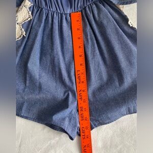 NWT Francesca’s Summer Shorts Romper Small Crochet Lace Blue Coastal Whimsical