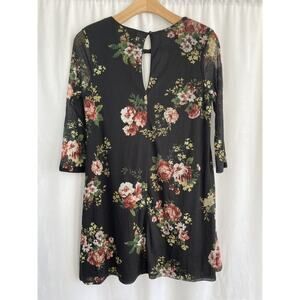 NWT Francesca's Trixxi Black Floral Soft Keyhole Shift Dress Womens Size Medium