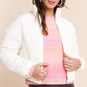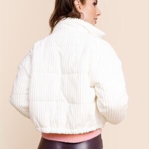 NWT Francesca’s Val Corduroy Cropped Puffer Jacket Cozy Soft White Winter Coat