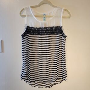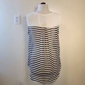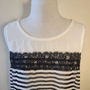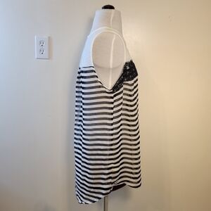 NWT Francesca's Women’s Large Sheer Black White Striped High Low Tank Top