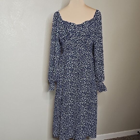 NWT Francesca's Miami Collections Blue and White Dot Long Sleeve Midi Dress M